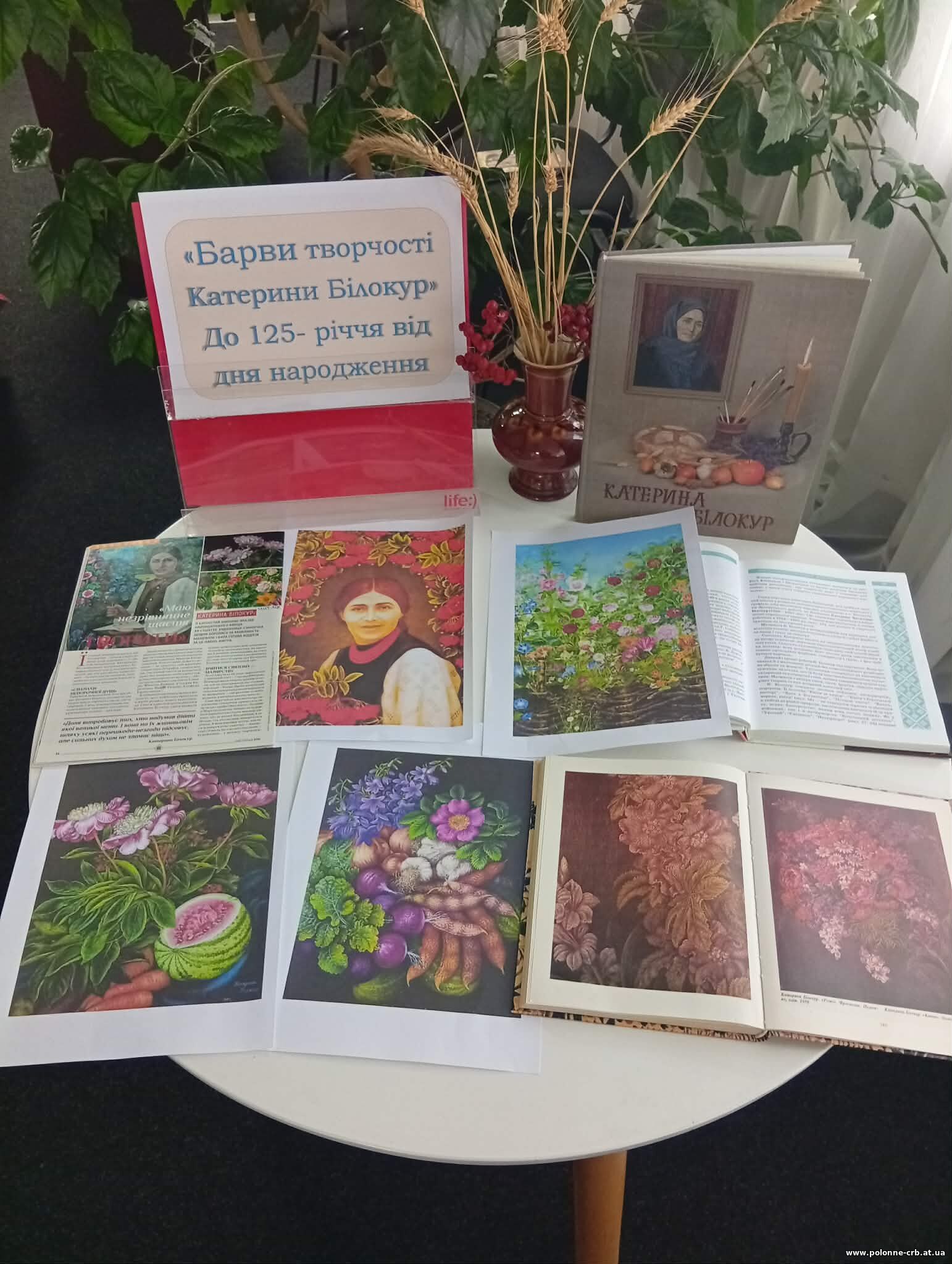 До 125 - річчя Катерини Білокур на абонементі ЦБ підготовлено арт - досьє "Барви творчості Катерини Білокур". Її роботи відомі у всьому світі - роботи мисткині самоука, майстрині декоративного живопису.